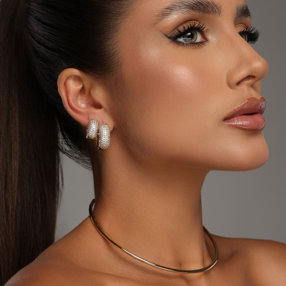Trio de argolas na cor Dourada maximizadas tamanho P, M e G, com design moderno e sofisticado, sendo metade das peças cravejadas em zircônias, proporcionando brilho e elegância na medida certa.
