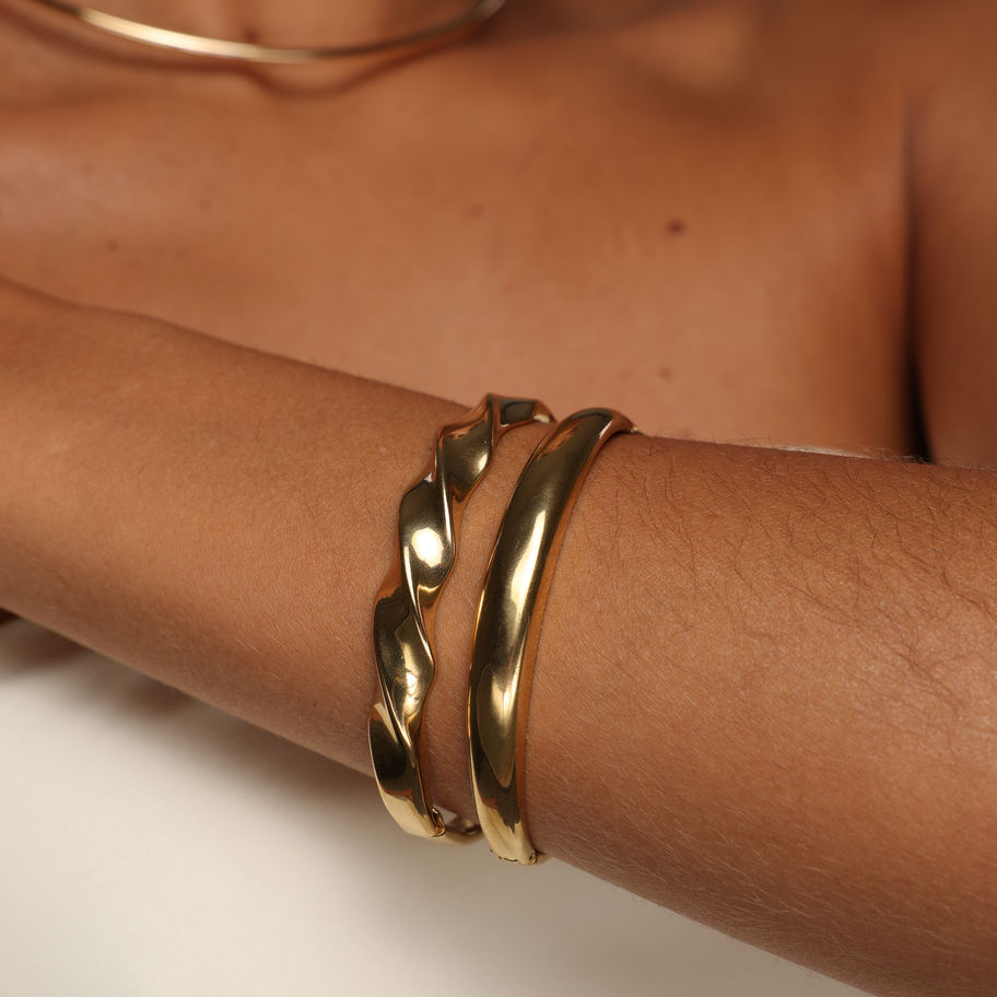 O bracelete dourado reto em aço inoxidável combina resistência e estilo. Seu acabamento diferenciado traz um toque moderno e sofisticado, perfeito para complementar looks do dia a dia ou ocasiões especiais.
