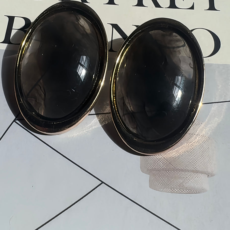 Seu formato oval com contorno dourado valoriza a peça e garante um visual chic, versátil e cheio de estilo.